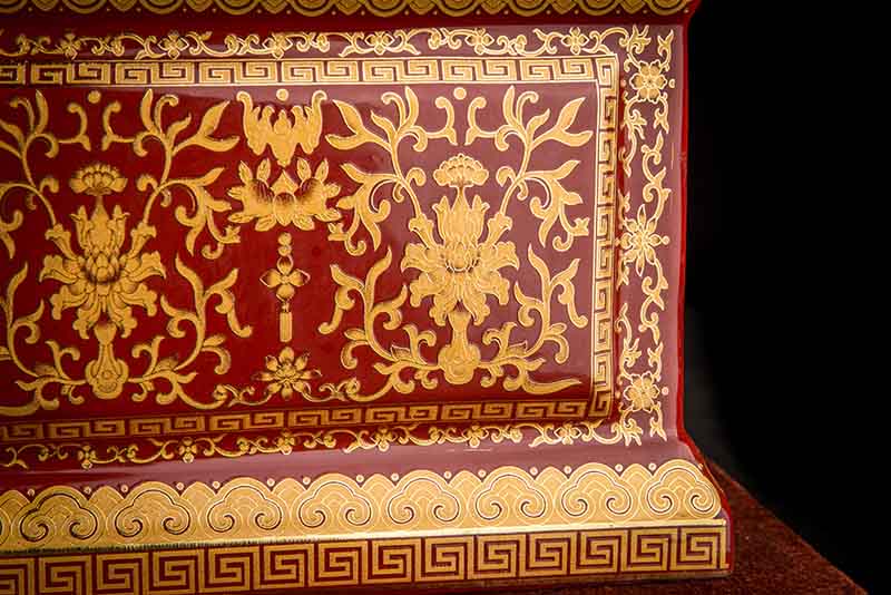 這款【吉祥如意】系列產(chǎn)品,目前有幾種顏色釉系列,黃、藍(lán)、紅、以及黑。這款產(chǎn)品運(yùn)用中國古代傳統(tǒng)的吉祥紋飾—“纏枝蓮”?!袄p枝蓮”常運(yùn)用在陶瓷作為點(diǎn)綴,因其結(jié)構(gòu)連綿不斷,故又具“生生不息”之意,同樣保后代代代繁榮。尺寸:300x230x210mm