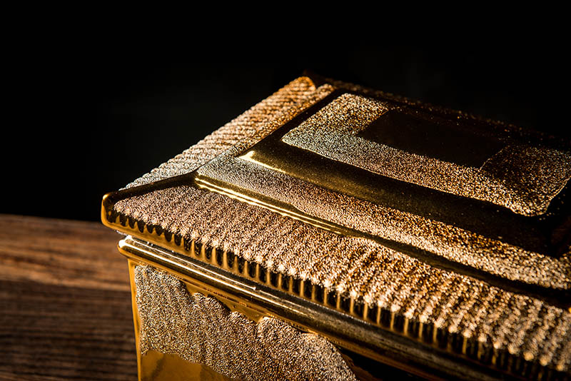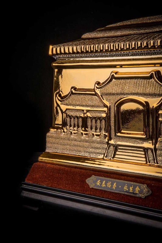 這款【磨砂金金寶盒】整體質(zhì)感出眾,看上去就是富麗堂皇,大氣,同樣是1300高溫煅燒,既有磨砂金的質(zhì)感,又有陶瓷那種光滑如肌的觸感,檔次,品質(zhì)自然而然就能很好的凸顯。這款【磨砂金金寶盒】正面是故宮造型,背面是山,寓意富麗堂皇,子孫后代今后事事有靠山,事事如意。尺寸:360x250x270mm(大)300x230x210mm(?。?/p>