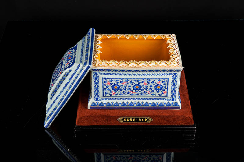 這款【福在眼前】產(chǎn)品沿用我們瓷都“景德鎮(zhèn)”具特色的青花,還有古代皇帝才能用的黃色作為底色,“纏枝蓮”、“蝙蝠”、“永生花”作為點(diǎn)綴,整體給人感覺特別典雅以及文藝。產(chǎn)品上繪上“蝙蝠”(寓意福到)盒“永生花”(寓意生命的永恒、眼睛的形狀)顧名思義“福在眼前”。尺寸:300x230x210mm