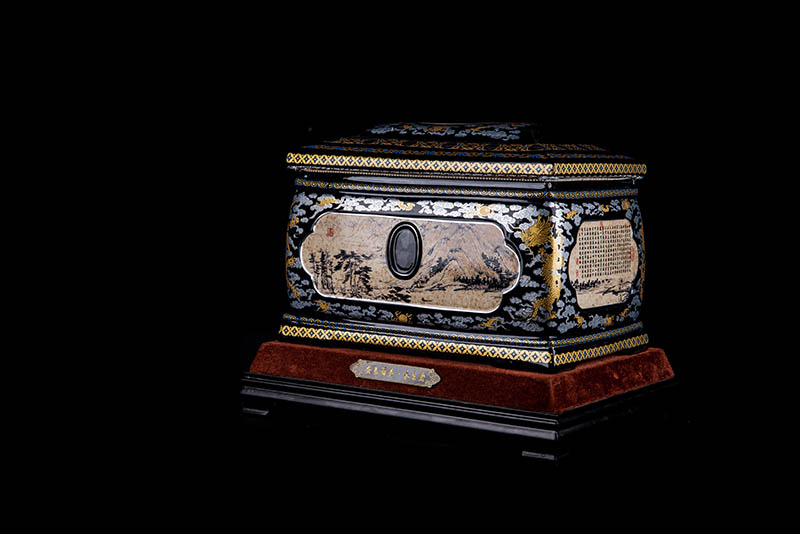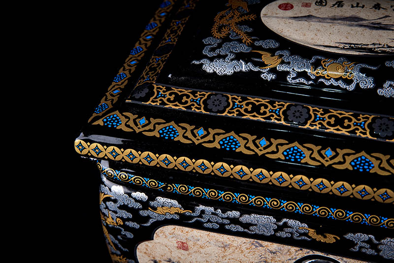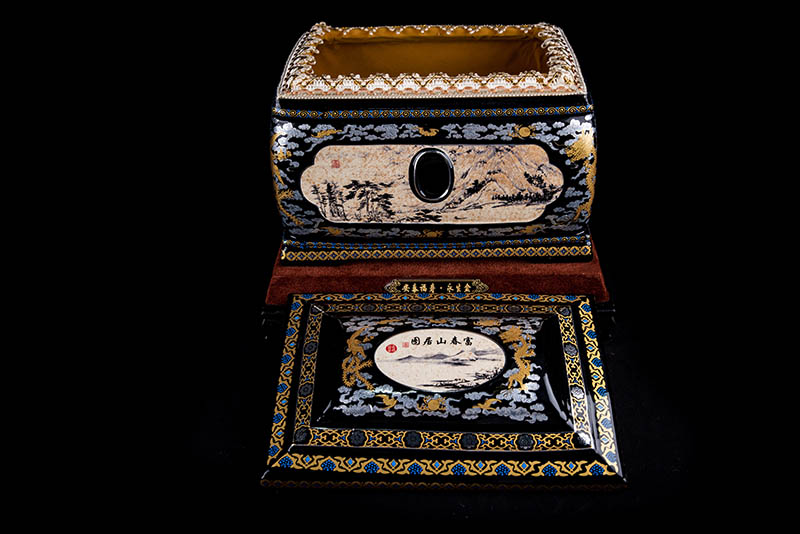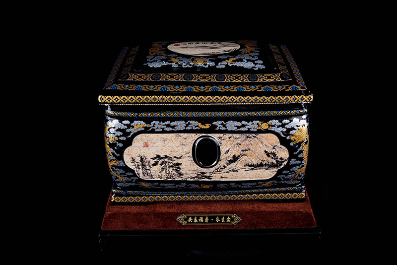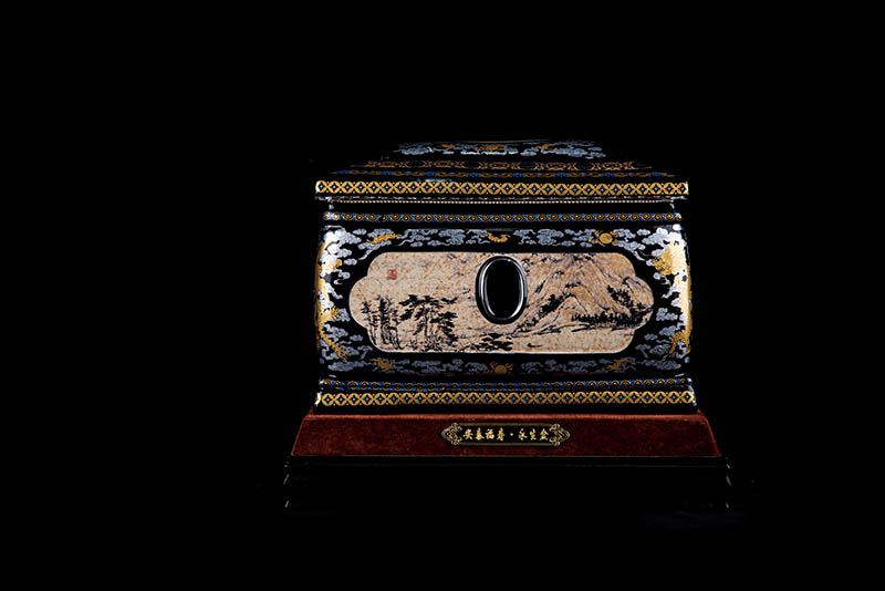 景德鎮(zhèn)安泰福壽陶瓷有限公司,永生盒系列之《富春山居圖》:本款產(chǎn)品是與浙江省杭州市桐廬殯儀館共同開發(fā)設(shè)計(jì),采用中國(guó)十大傳世名畫之一《富春山居圖》作為主要背景,配之以“祥云”、“龍鳳”,“蝙蝠”加以點(diǎn)綴,圖案以浙江省富春江作為背景,80%為桐廬境內(nèi)富春江景色,富春山居圖被譽(yù)為“畫中之蘭亭”,對(duì)于桐廬殯儀館而言,這更是一種家鄉(xiāng)情懷,表達(dá)了對(duì)于藝術(shù)不懈的追求,也是桐廬人民引以為傲的佳品。尺寸:340x230x250mm
