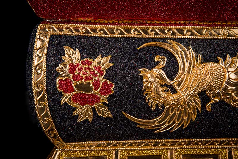 產(chǎn)品特征:24K金線漆線雕工藝,具特色的傳統(tǒng)民間手工藝精品,目前可考的有1400多年的歷史,金線雕乃純手工制作,相當(dāng)繁復(fù),工序上由原來(lái)簡(jiǎn)單的條、雕、刻發(fā)展到條、盤、纏、堆、雕鏤等十種純手工藝流程,做工精細(xì)雅致,形象逼真生動(dòng)、風(fēng)格古樸典雅,畫面栩栩如生。